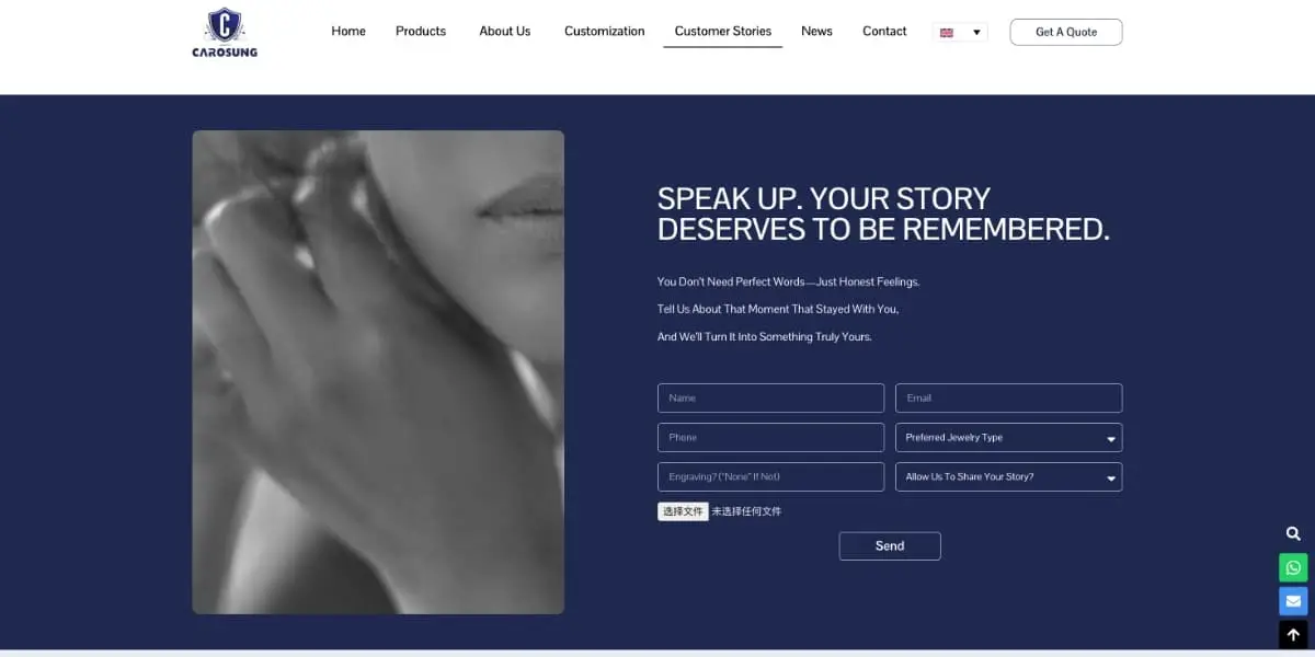 • 开放式投稿通道,客户可通过表单上传文字和图片,分享与首饰相关的个人故事。