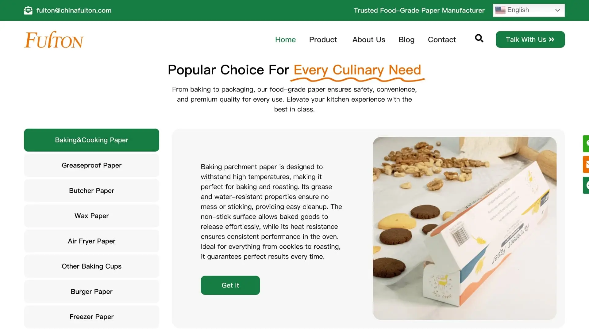 • 产品分为硅油纸、防油纸、烘焙纸等子类,结构清晰,结合实用性导向,提升用户浏览效率。